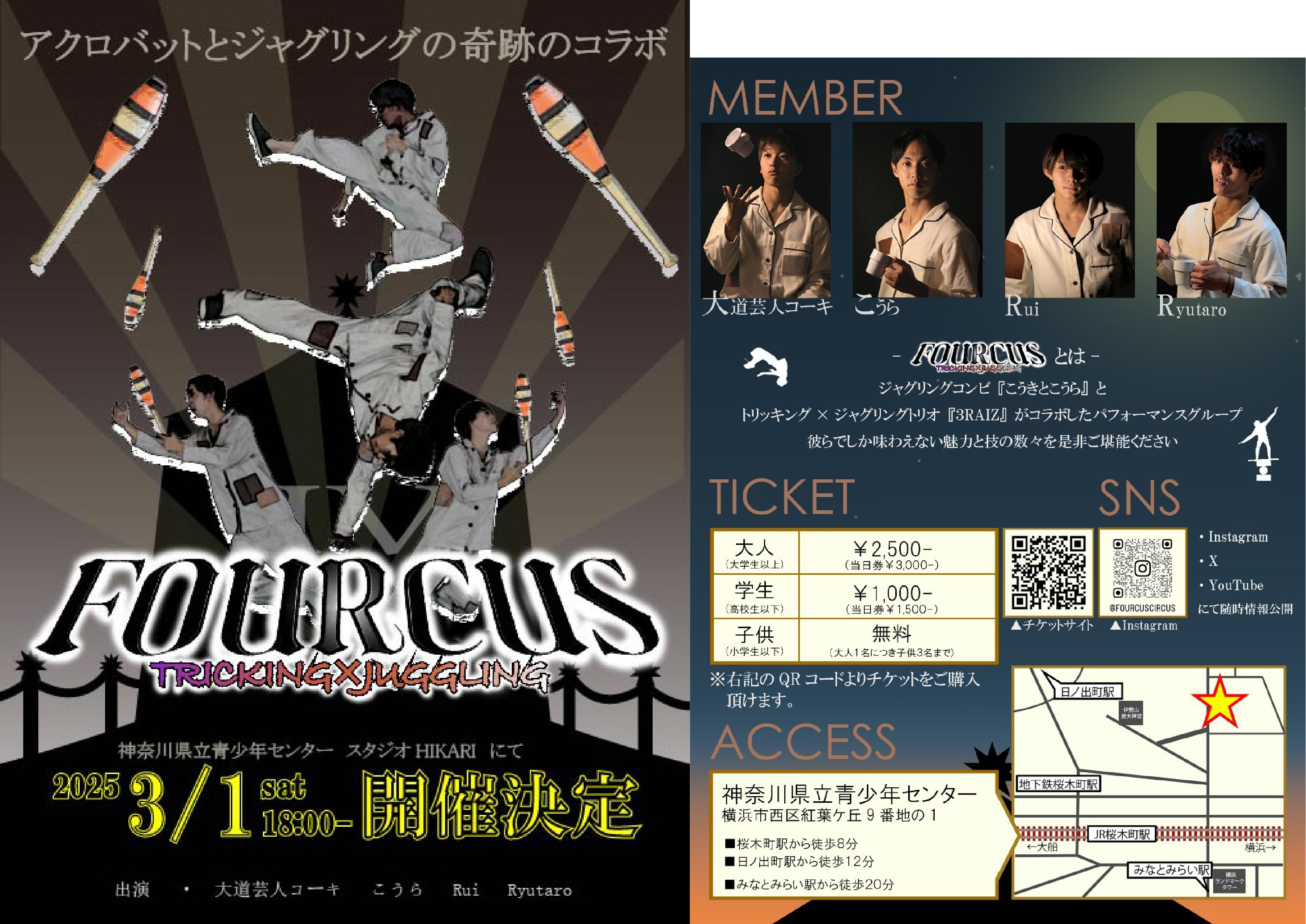 ジャグリングコンビ「こうきとこうら」とトリッキング×ジャグリングトリオ「3RAIZ」がコラボしたパフォーマンスグループ